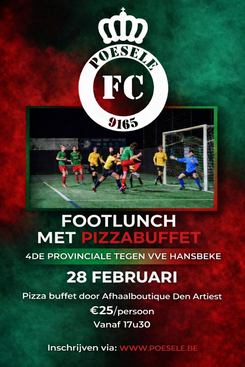 Vanaf 17u30 kan je komen genieten van een heerlijk pizza buffet, en daarna zet je de sfeer verder langs de lijn!